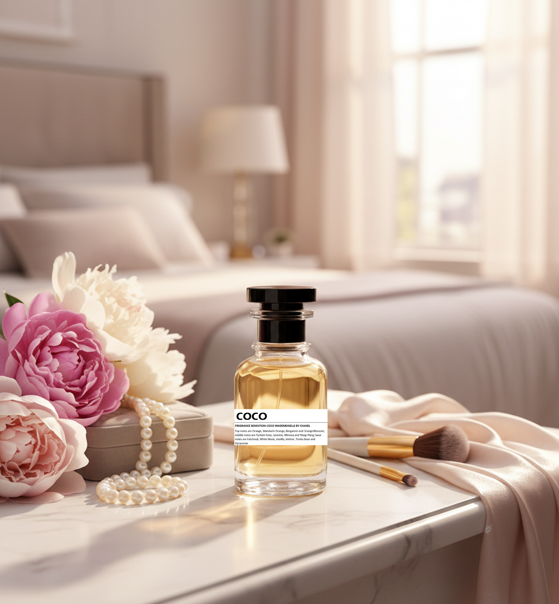 COCO presents a sophisticated blend that opens with vibrant top notes of Orange, Mandarin Orange, Bergamot, and Orange Blossom, delivering a fresh and citrusy introduction. The fragrance then unfolds into a rich heart featuring Turkish Rose, Jasmine, Mimosa, and the unique Vlank-Tlank, creating a complex floral bouquet that adds depth and elegance. Finally, the base notes of Patchouli, White Musk, Vanilla, Vetiver, Tonka Bean, and Opoponax provide a warm, sensual foundation, ensuring lasting presence and a refined, luxurious finish. This expertly crafted composition balances brightness with warmth for a timelessly captivating scent experience.